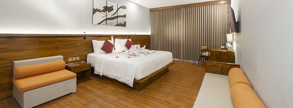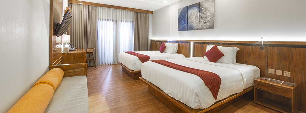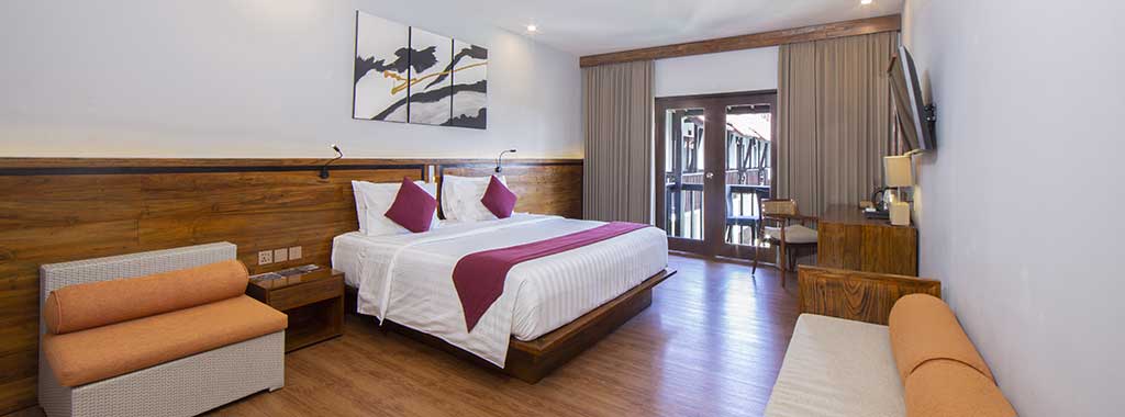Modern with Classic Style in all the best ways, the 34 m2 Deluxe Room at our Bali family resort combines a contemporary decor with local accents to create a restful ambience. Bathed in natural sunlight on the balcony overlooking to the pool. Located mostly on the 3rd floor, spacious room comes with premium bedding. Guests enjoy Welcome Drink.