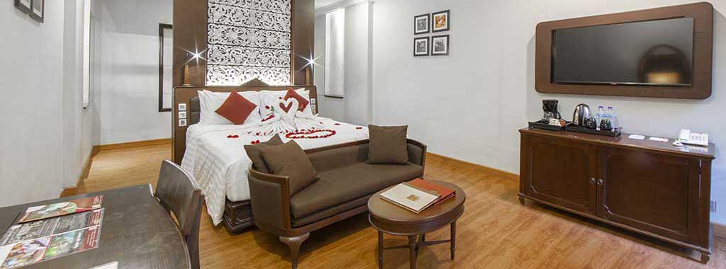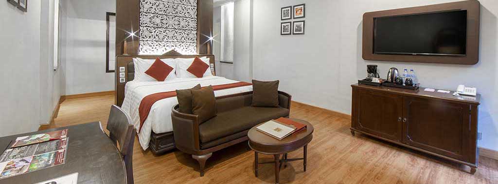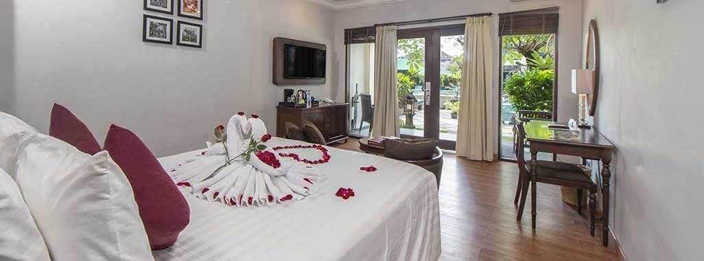 This luxury category covers the Executive Room at The Lokha Legian Resort & SPA. Each Super Deluxe Room (42 m2) provides plenty of space to ensure your privacy and relaxation. Enjoy garden or pool views from a large terrace, complete with uniquely designed seating areas. A large bedroom guarantees a good night’s sleep. Located on the ground floor, spacious room comes with pool access. Guests enjoy a welcome drink.